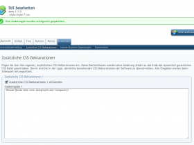 Also weiss ich das ich diese beiden Eigenschaften brauche um den Header transparent zu bekommen und schreibe mir das in die zusätzlichen CSS-Deklarationen im Stileditor rein und speichere das ab:
