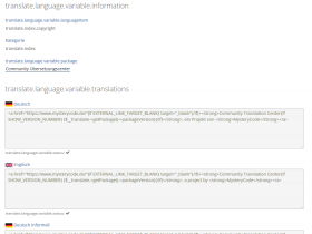 Das ist nicht das Übersetzungsformular, sondern eine Detail-Seite zur jeweiligen Sprachvariable (oder wie auch immer wir es nennen wollen). Dargestellt werden zwar Eingabefelder, deren Inhalt man allerdings nicht verändern (und auch nicht absenden) kann. Hier werden stumpf alle Übersetzungen aufgelistet, die bereits vorhanden sind.