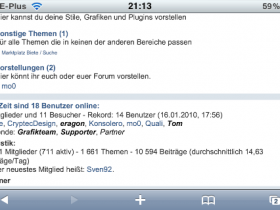Ich hab da mal was ausgegraben, einen Mobilstil für das iPhone. Also nicht nur, ich hab nur nichts anderes zum Testen. Momentan sieht das so aus und lässt sich auch schon ganz gut ohne Zoomen bedienen. Das ist die Originalgröße nach dem Seitenaufruf: