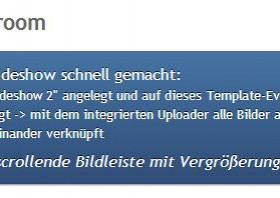 Nachtrag. Habe nun alles mögliche ausprobiert, bei Box und auch beim Inhalt es ändert sich nur bei Slideshow Responsiv in Minibildchen mit der Beschreibung und darunter dann etwas grösser die Vorschaubilder. Alles andere bleibt gleich gross. Gebe für heute auf, sehe echt nicht wie ich das ändern kann, zumal in der Beschreibung bei Cr@@igle's Showroom steht "Box mit Modus "Slideshow 2" angelegt und auf dieses Template-Event gesetzt"