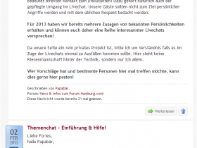 Nun ist mir die Idee gekommen, dieses Schicke Popup-Fenster anstatt mit der Aufforderung zum registrieren, mit dem Inhalt des Startseiten-Plugin zu füllen. Konkret meine ich die Funktion, welche mich Nachrichten aus einem bestimmten Unterforum auswählen lässt. Siehe Bild.