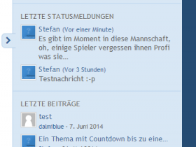 9. Es wäre wohl nur ein "nice to have", denke ich, und ich würde es nicht direkt auf die Funktionsliste setzen, daher nur in Klammern zu sehen, ja? Aktuell würden Statushinweise im Profil unter "Letzte Aktivitäten" gelistet werden. Wenn man diese nun separiert unter einem eigenen Tab sammeln und einsehen könnte...? Was meinst du spontan, nett, eine Überlegung wert oder unnötig und zu viel?