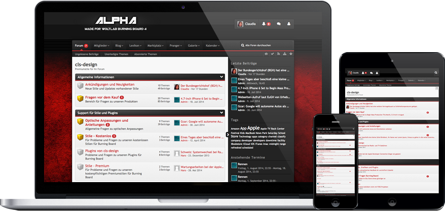 Alpha ist ein grafisch aufwendiger Stil für alle die verspielte Stile mit vielen raffinierten Details bevorzugen. Die Hintergrundbilder können natürlich beliebig getauscht und die Headerhöhe kann nach Wunsch eingestellt werden. Die Subnavigation ist in Dropdownmenüs ausgeführt.