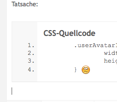 Lustig, ich wollte gerade unter einen Codeblock ein Smiley setzen, nur wollte der nicht da hin wo her hin sollte: