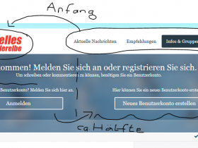Rechts sähe man 3-5 weitere Teaserboxen, die durch eine kleine Grafik bzw. Grafik plus einen Satz im Teaser-Stil die nächsten/weitere Artikel anzeigen. Zu testen wäre, ob man diese Teaserboxen dann a) automatisch durchlaufen/anzeigen lässt oder b), ob man eine Art Laufleiste integriert, so dass der User merkt "Ah, ich soll/kann klicken!" bzw. es eben tut.
