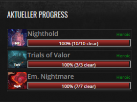 Alles anzeigen<!DOCTYPE html PUBLIC "-//W3C//DTD XHTML 1.0 Transitional//EN" "http://www.w3.org/TR/xhtml1/DTD/xhtml1-transitional.dtd"> <html xmlns="http://www.w3.org/1999/xhtml"> <head> <meta http-equiv="Content-Type" content="text/html; charset=utf-8" /> <title>Aktueller Progress</title> </head> <table width="100%" style="margin:0px;padding:0px;" > <tr valign="top"> <td width="35" height="34" rowspan="2"><img src="https://kotoc.de/download/progress/nf.jpg" width="40" height="38"></td> <td><strong>Nighthold</strong></td> <td align="right" nowrap><font size="1" color="#009916">Heroic</font></td> </tr> <tr> <td colspan="2"> <table width="100%" cellspacing="1" cellpadding="0" style="border: 1px solid #cccccc"> <tr> <td width="100%" nowrap> <div style="font-size:10px;color:#FFFFFF;background-image:url('https://kotoc.de/download/progress/progress_line.jpg');background-repeat:repeat-x;height:12px;width=100%;"><center>100% (10/10 clear)</center></div> </td> <td width="0%" nowrap> <div style="font-size:10px;color:#000000;"></div> </td> </tr> </table> </td> </tr> <tr> <td colspan="2" style="height:3px"></td> </tr> </table> <table width="100%" style="margin:0px;padding:0px;"> <tr valign="top"> <td width="35" height="34" rowspan="2"><img src="https://kotoc.de/download/progress/tov.jpg" width="40" height="38"></td> <td><strong>Trials of Valor</strong></td> <td align="right" nowrap><font size="1" color="#009916">Heroic</font></td> </tr> <tr> <td colspan="2"> <table width="100%" cellspacing="1" cellpadding="0" style="border: 1px solid #cccccc"> <tr> <td width="100%" nowrap> <div style="font-size:10px;color:#FFFFFF;background-image:url('https://kotoc.de/download/progress/progress_line.jpg');background-repeat:repeat-x;height:12px;width=100%;"><center>100% (3/3 clear)</center></div> </td> <td width="33%" nowrap> <div style="font-size:10px;color:#000000;"></div> </td> </tr> </table> </td> </tr> <tr> <td colspan="2" style="height:3px"></td> </tr> </table> <table width="100%" style="margin:0px;padding:0px;"> <tr valign="top"> <td width="35" height="34" rowspan="2"><img src="https://kotoc.de/download/progress/en.jpg" width="40" height="38"></td> <td><strong>Em. Nightmare</strong></td> <td align="right" nowrap><font size="1" color="#009916">Heroic</font></td> </tr> <tr> <td colspan="2"> <table width="100%" cellspacing="1" cellpadding="0" style="border: 1px solid #cccccc"> <tr> <td width="100%" nowrap> <div style="font-size:10px;color:#FFFFFF;background-image:url('https://kotoc.de/download/progress/progress_line.jpg');background-repeat:repeat-x;height:12px;width=100%;"><center>100% (7/7 clear)</center></div> </td> <td width="0%" nowrap> <div style="font-size:10px;color:#000000;"></div> </td> </tr> </table> </td> </tr> <tr> <td colspan="2" style="height:3px"></td> </tr> </table> <body> </body> </html>