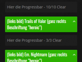 Die Box ist mit dem Editor erstellt um diesen Ausklapp-Effekt des Spoilers zu erhalten. Leider lässt sich in ihm keine HTML Progressbar erstellen. Und nun stehe ich vor einem Problem, da ich noch nicht weiß wie ich das umsetzen kann. Ich würde gern in dem "button" gerne noch das kleine Bild links haben und ganz rechts soll "heroic" stehen.Wegen dem CSS würde ich gern vom Aussehen in diese Richtung gehen: