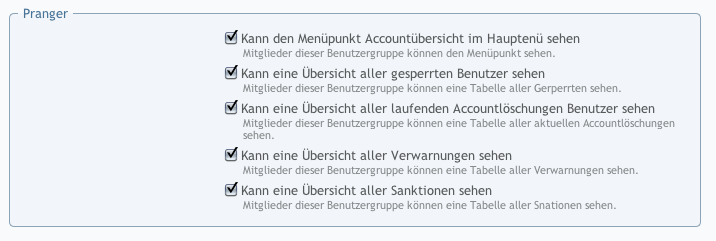 Benutzergruppe -> Allgemeine Rechte -> Forum -> Pranger