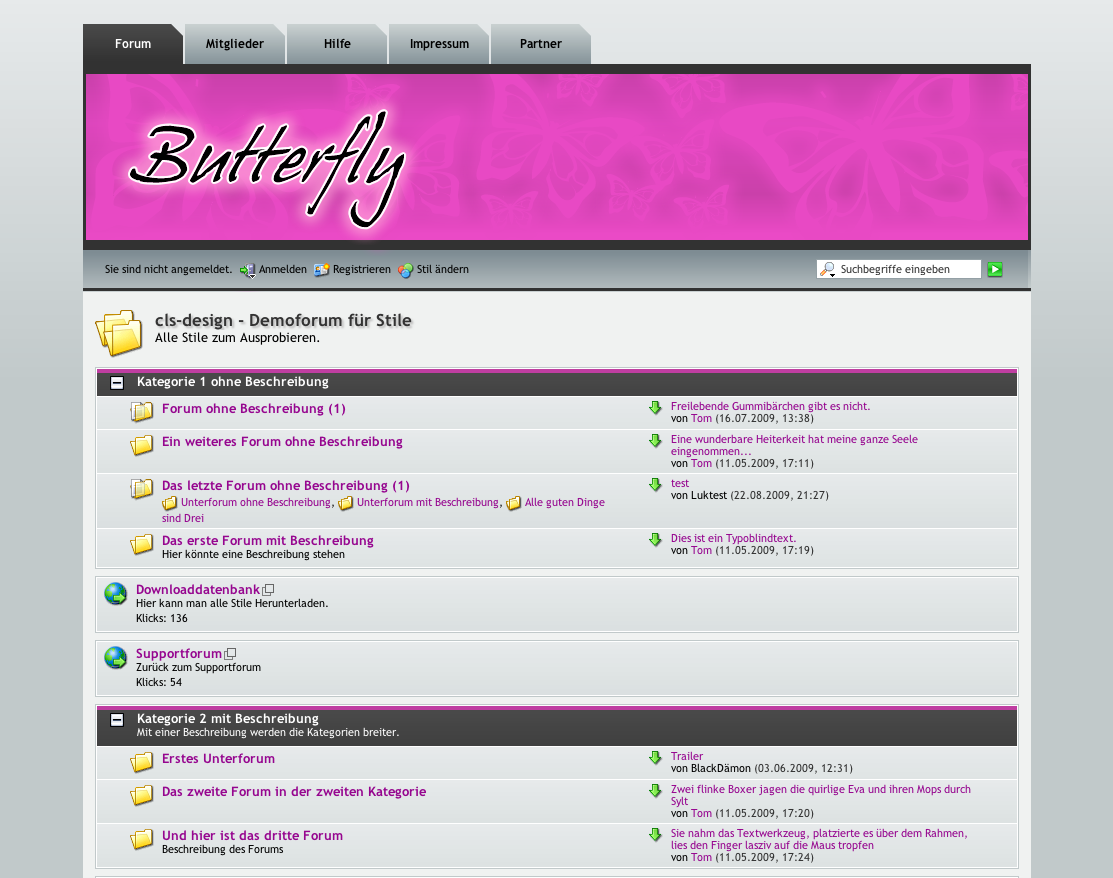 Standardstil mit pinkenen Farbakzenten und einem Schmetterlingsthema.