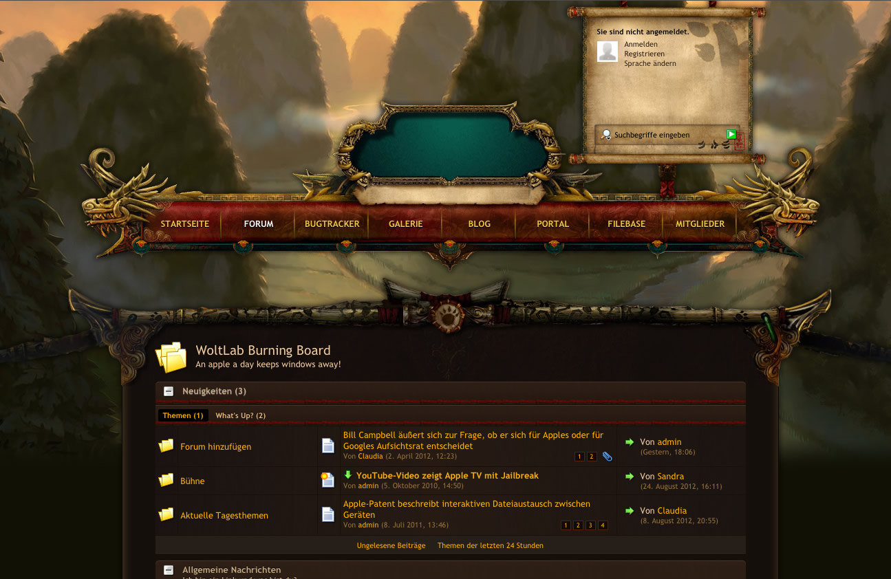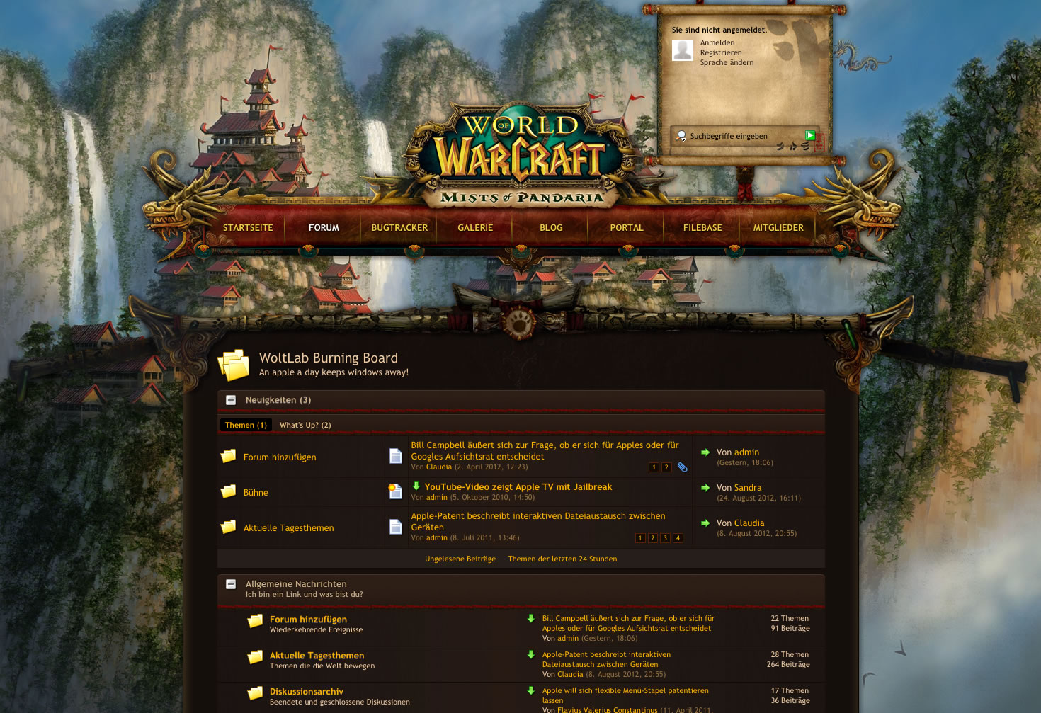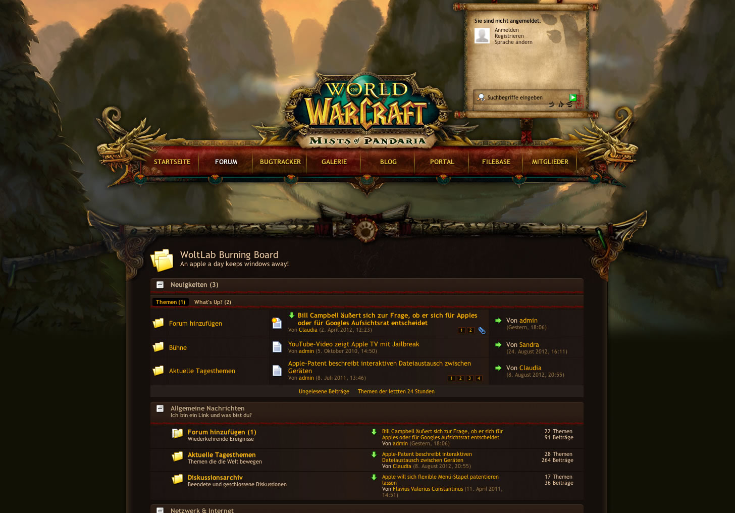Das Warcraftlogo im Header kann natürlich getauscht werden, unter dem Warcraftlogo befindet sich eine für eigene Logos vorbereitete Leerfläche -> Screenshots ansehen.