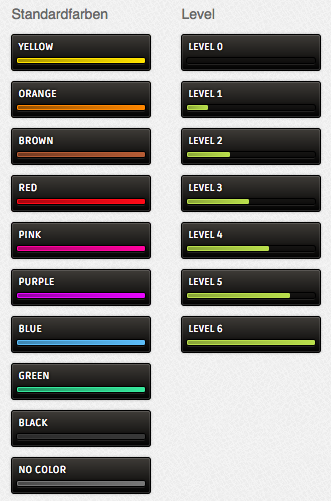 Nach der Installation werden die Standardränge der Suite automatisch umgewandelt. Die Farben können direkt über die Rangverwaltung eingestellt werden. Darüber hinaus gibt es sechs zusätzliche mit Abzeichen (Level 0%-100%). Diese können über folgende Klassen angesprochen werden: