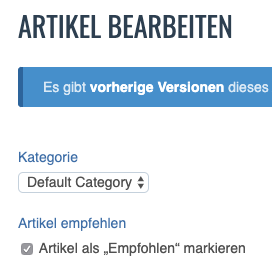 Diese Erweiterung erlaubt Artikel als "Empfohlen" zu markieren: