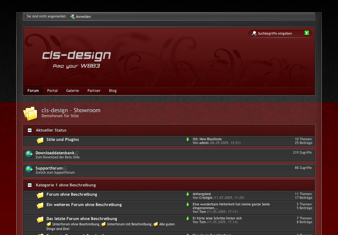 Neu erstellter Stil nur für das WBB 3.1. Eine Glasoptik in Rottönen und floralen Elementen zeichnet ihn aus.