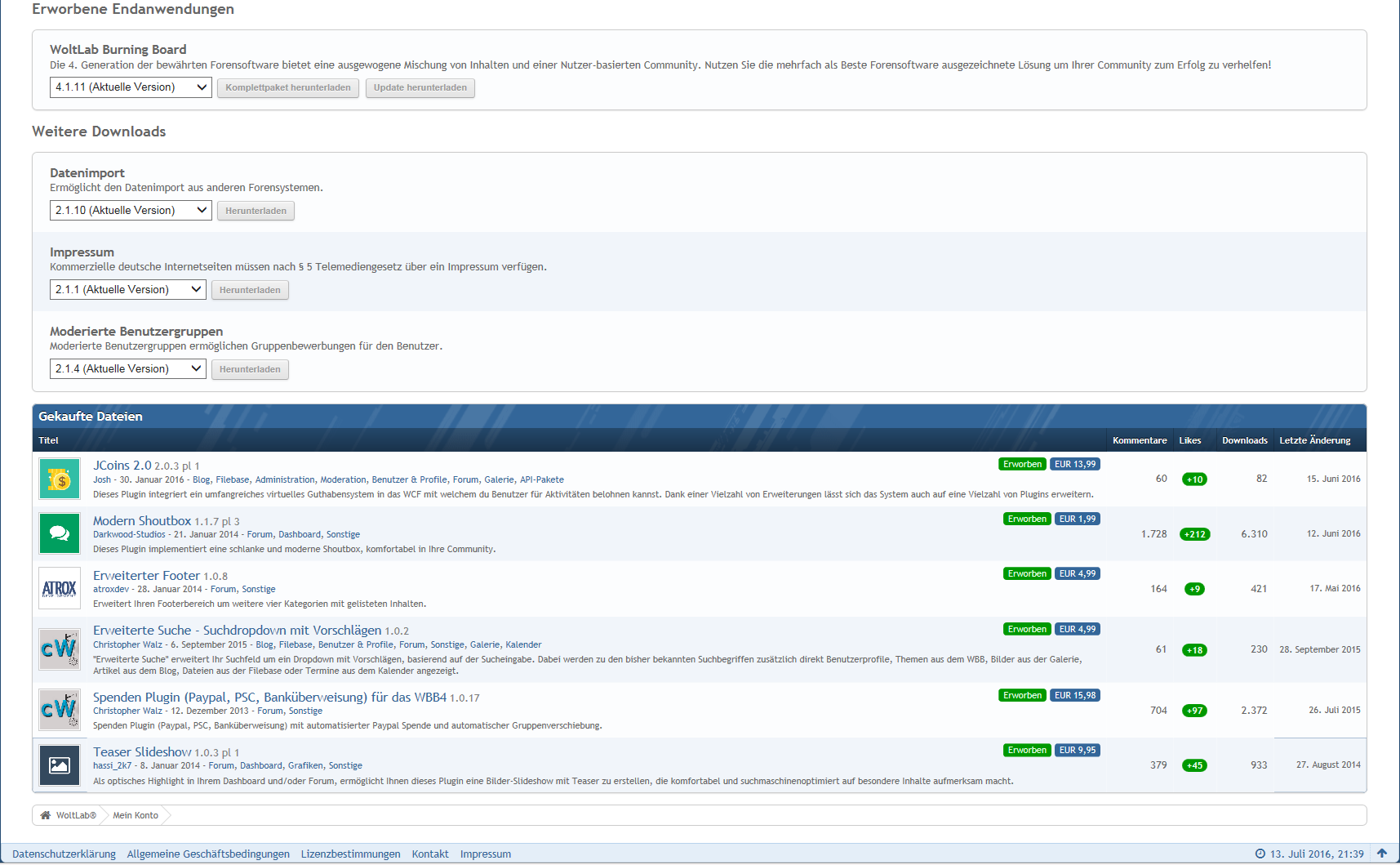 Erweiterungen Woltlab Store