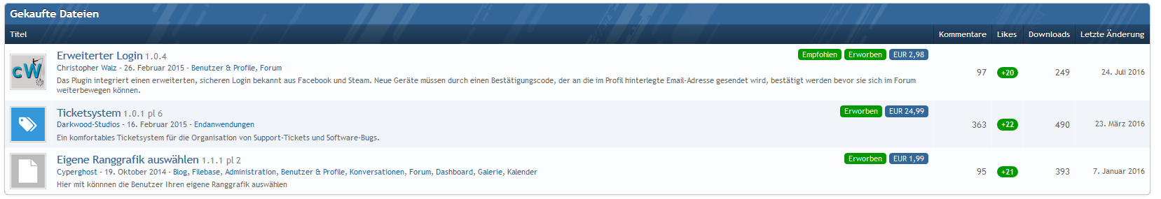 ich verkaufe meine aktuell ungebrauchte Burning Board 4.1 Lizenz mit folgenden Plugins: