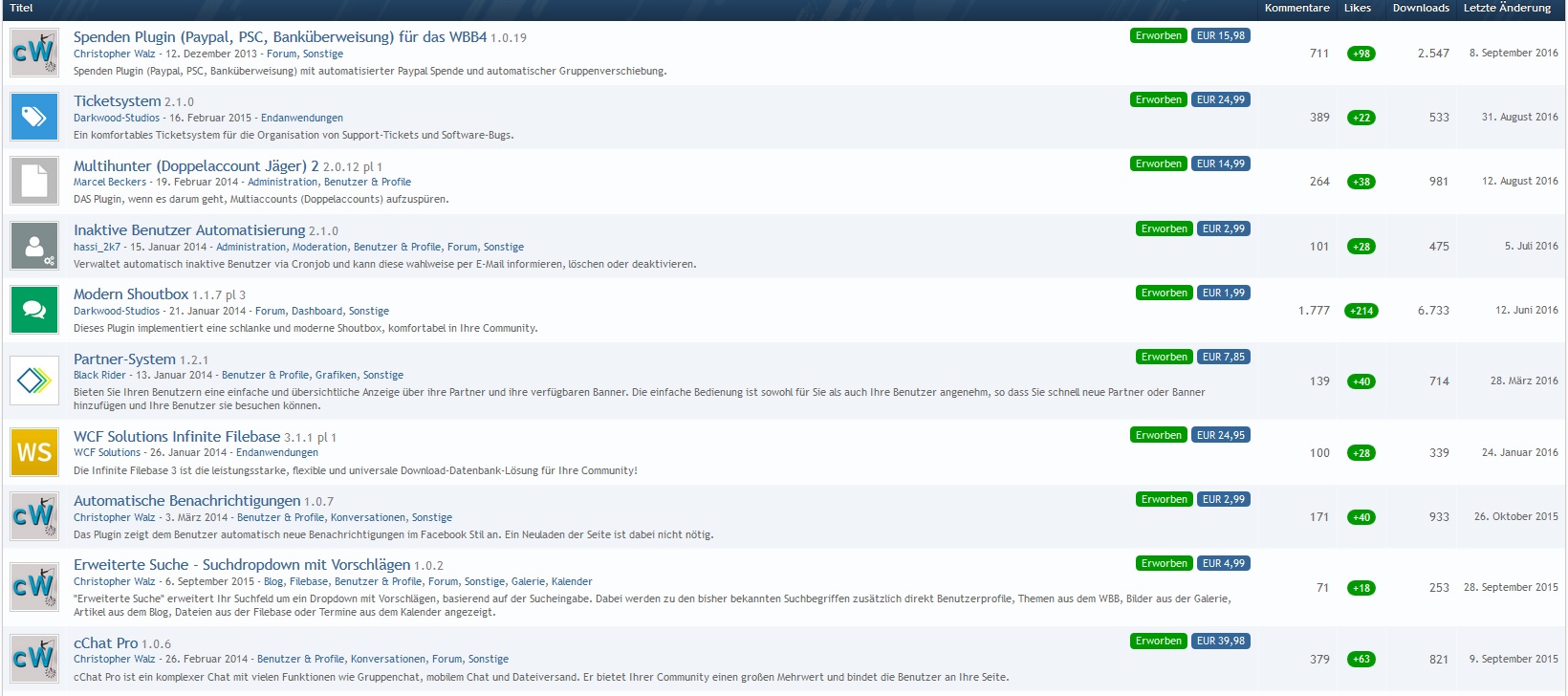 Hallo, hiermit biete ich meinen kompletten Woltlab- Account zum Übertrag an. Das ganze verkaufe ich ausschließlich als Paket, einzelne Plugins werden nicht ausgelöst.