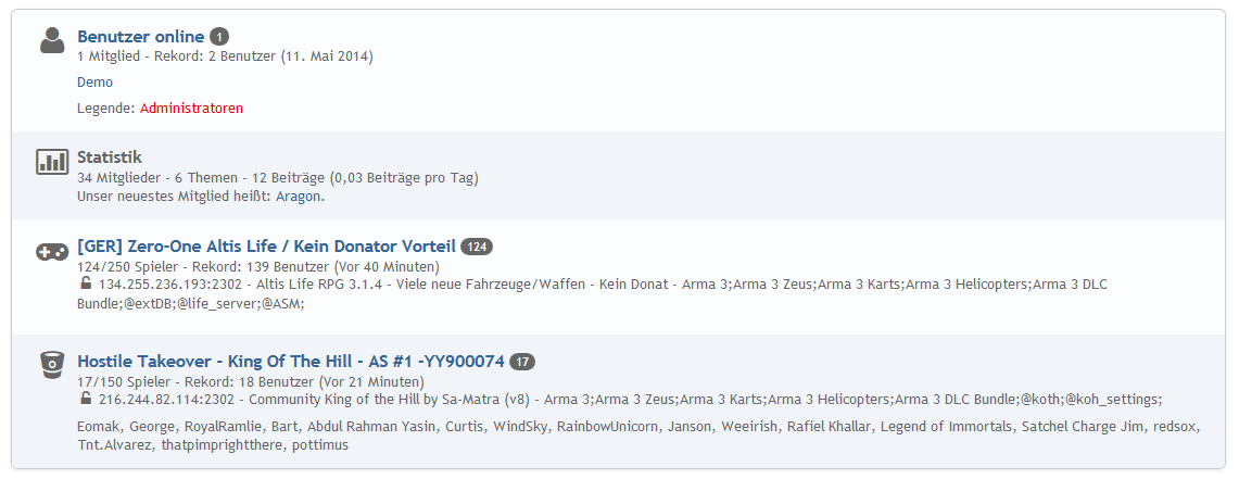 Serverleiste auf der Startseite des Forums