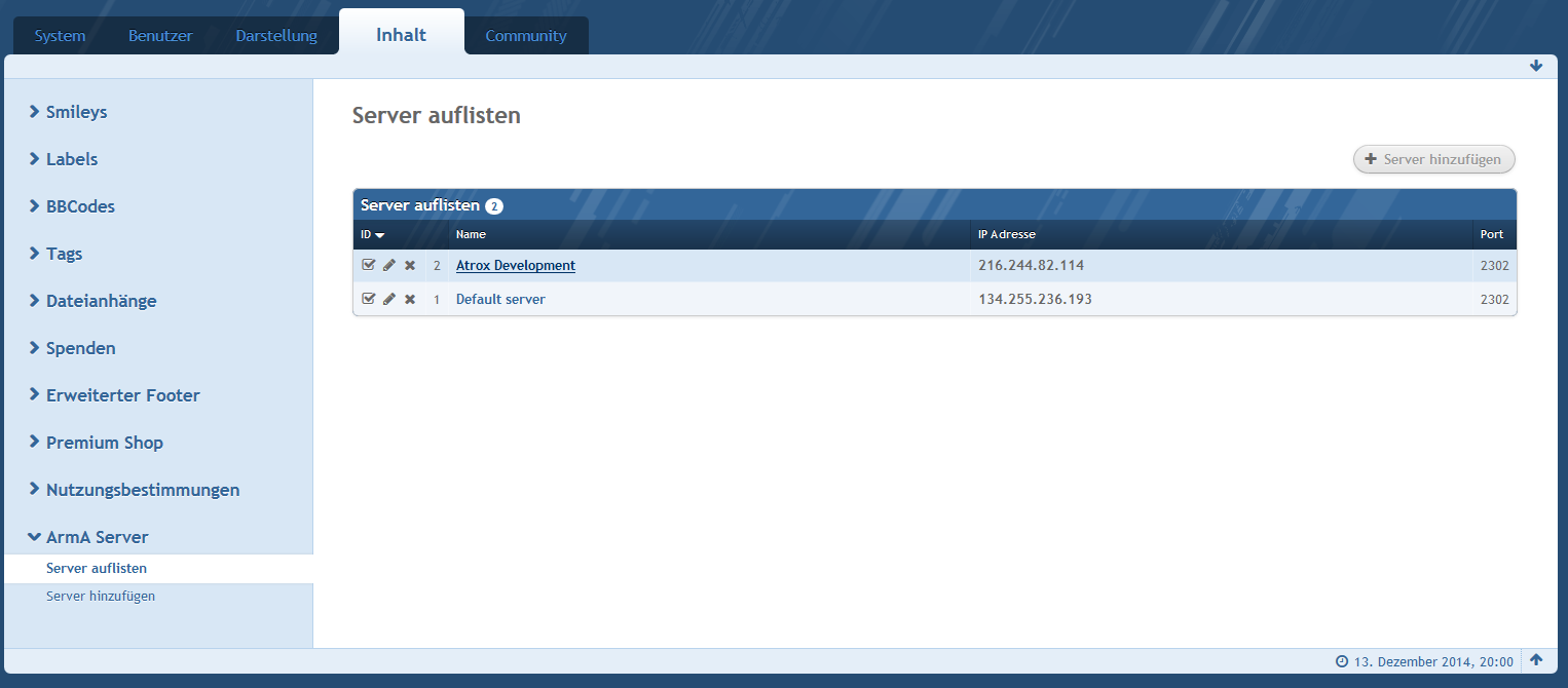 Dieses Plugin fügt mehrere ArmA II und III Server (also auch DayZ und Altis Life Server) in das WBB 4 hinzu.