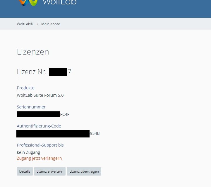 • Ich möchte gerne meine WoltLab Suite Forum 5.0 Lizenz verkaufen