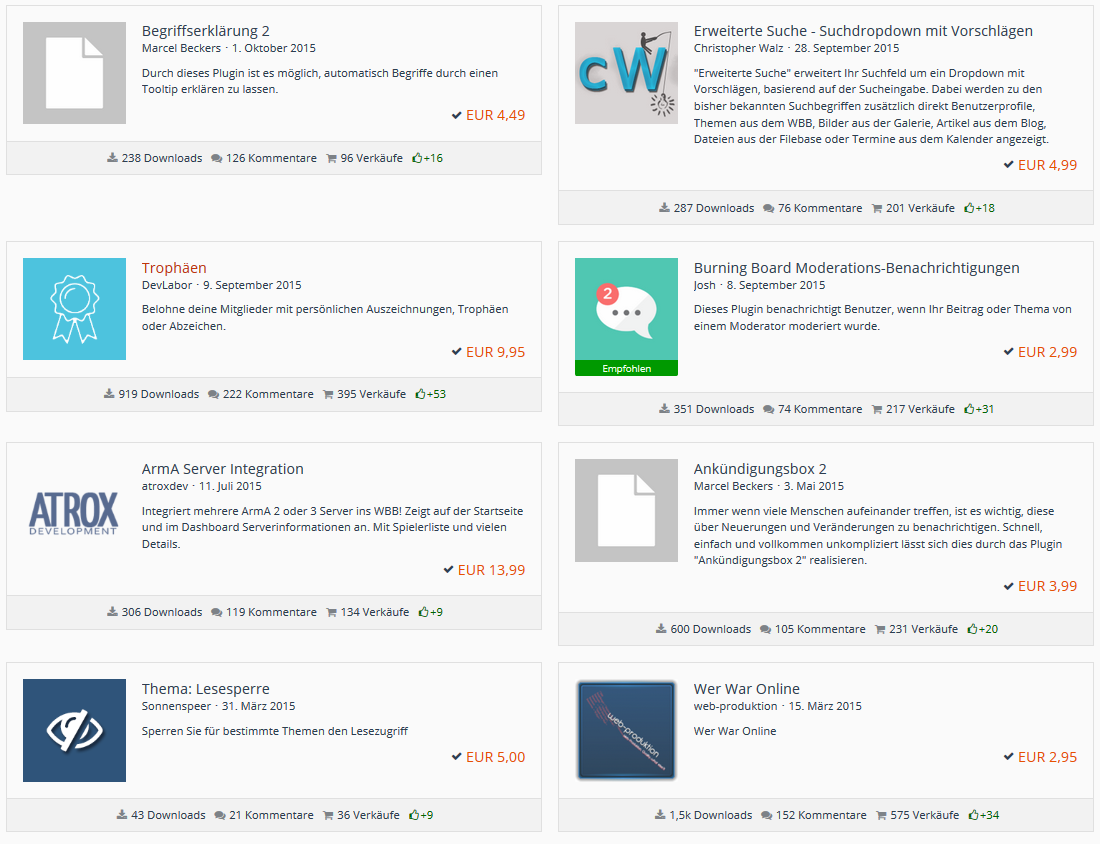 WBB Burning Board Lizenz Kosten : 80,00 Euro + 335 Euro Plugin Gesamtkosten --> 415 Euro
