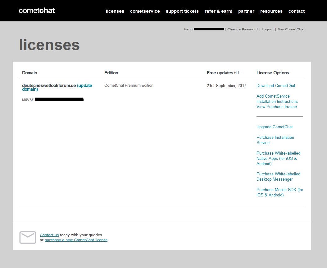 ich möchte meine Lizenz vom CometChat abgeben.