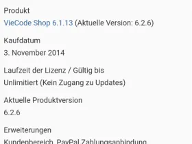 1x VieCode Shop 6.1 inkl. Kundenbereich, PayPal Zahlungsanbindung, Sofortüberweisung Zahlungsanbindung, Gutscheine, Erweiterte Lizenzverwaltung, BrandingFree Lizenz, Statistische Auswertung, WCF Paketserver