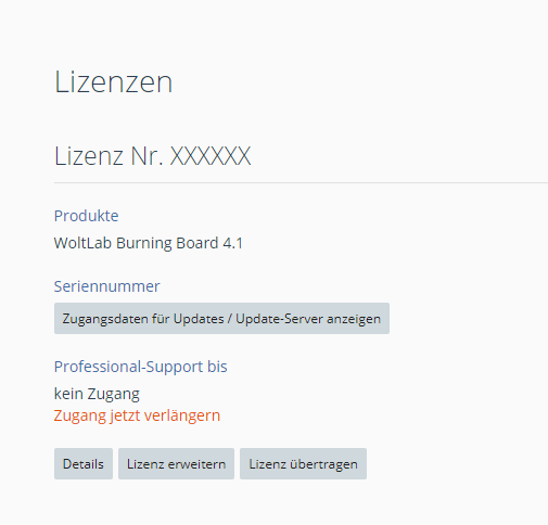 ich selber habe keine Verwendung mehr für das WBB und verkaufe hier den ganzen Account mit den Plugins. Die Lizenz Nummer habe ich extra mit XXXXX Zensiert.