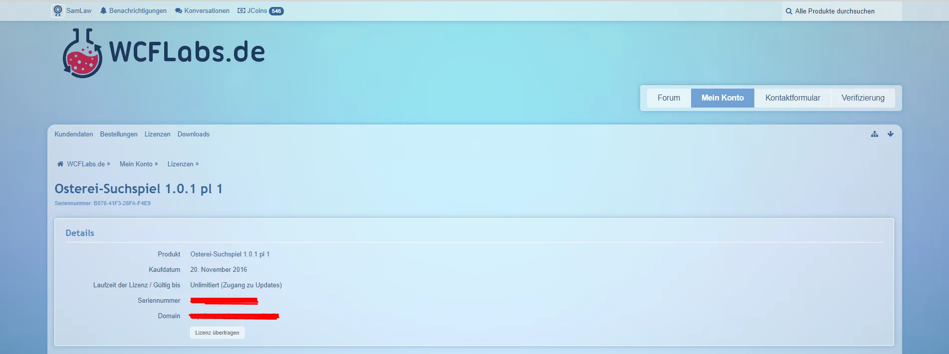 • Ich biete eine lizenz auf https://wcflabs.de an. Die Lizenz ist zu Übertragen: