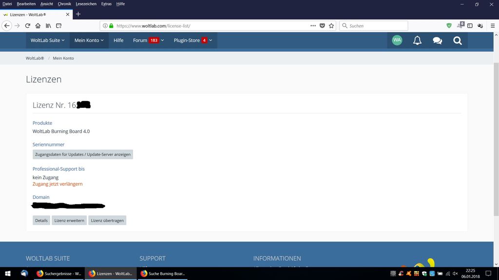 Ich biete eine Woltlab Burning Board 4.0 Lizenz.Mit Übernahme meines Woltlab Accounts.Die Lizenz wurde 2005 von mir gekauft. Bei Fragen stehe ich gern zur Verfügung. Lg 35 €