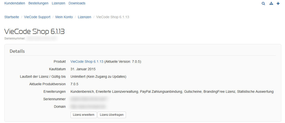 Voraussetzung für die Übertragung der Lizenz ist, dass diese auf ein existierendes Kundenkonto bei VieCode übertragen wird ODER ich bei der Übertragung für den Käufer ein neues Kundenkondo dort anlegen lasse.
