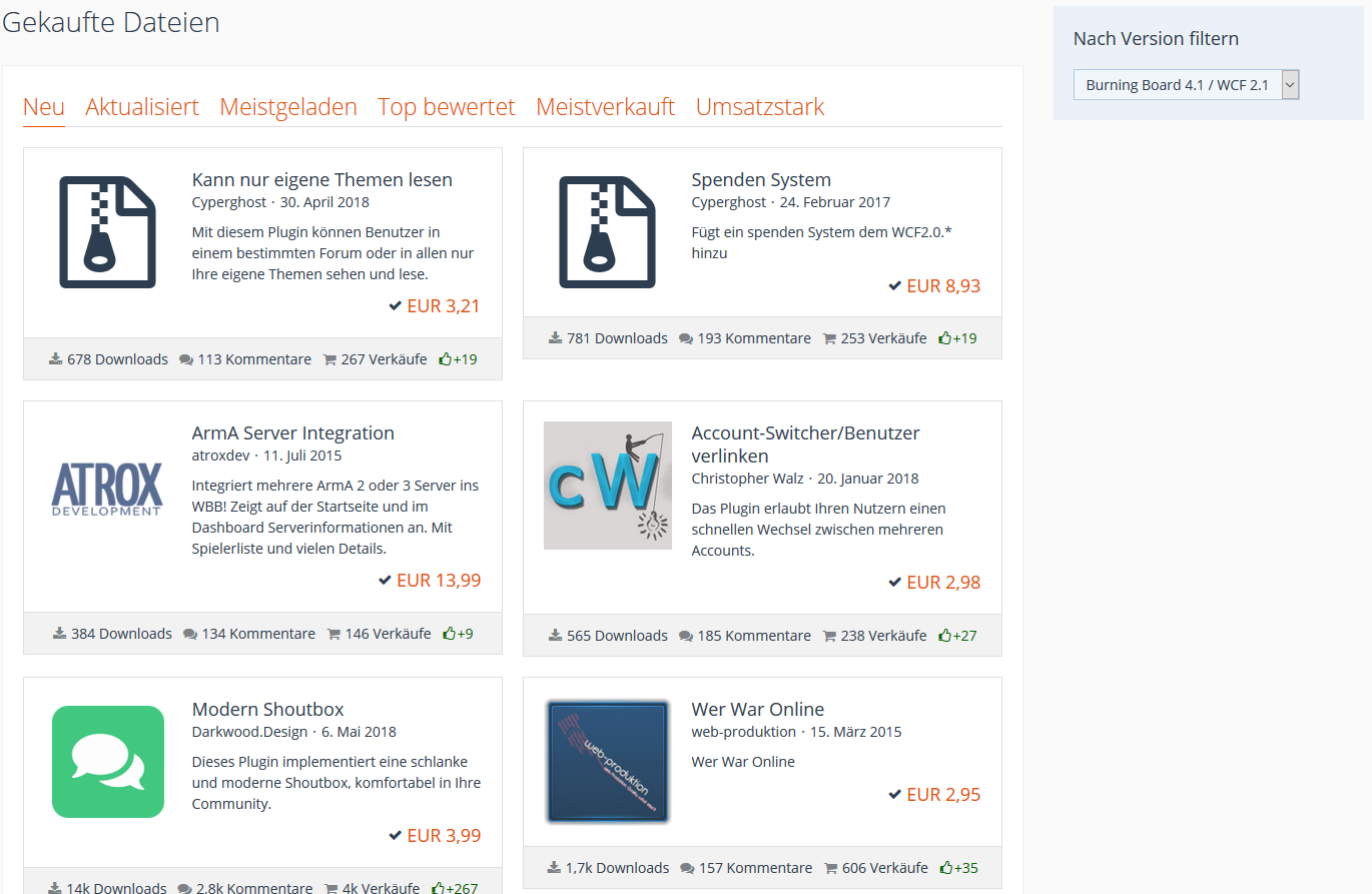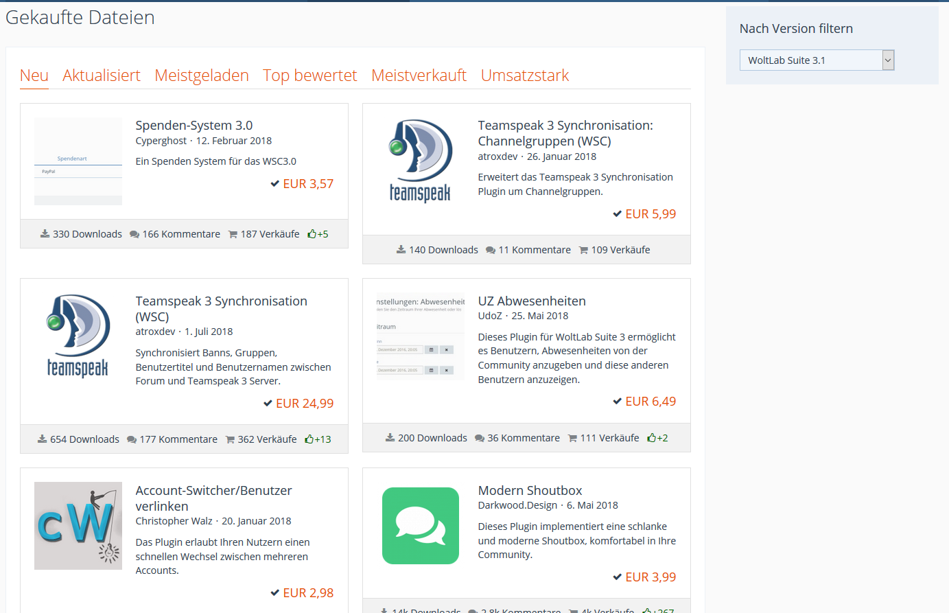 Außerdem beinhalte mein Account noch eine alte Lizenz des Woltlab Burning Boards 3.1, die wäre im Preis mit inbegriffen.