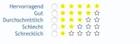 Was spricht gegen auf WSC 3.2 warten und dann Reaktionen zu nutzen? Dort entsprechend Bilder mit entsprechender Anzahl an Sternen. Wobei ich nicht weiß, ob man den Mittelwert dann einfach berechnen kann.
