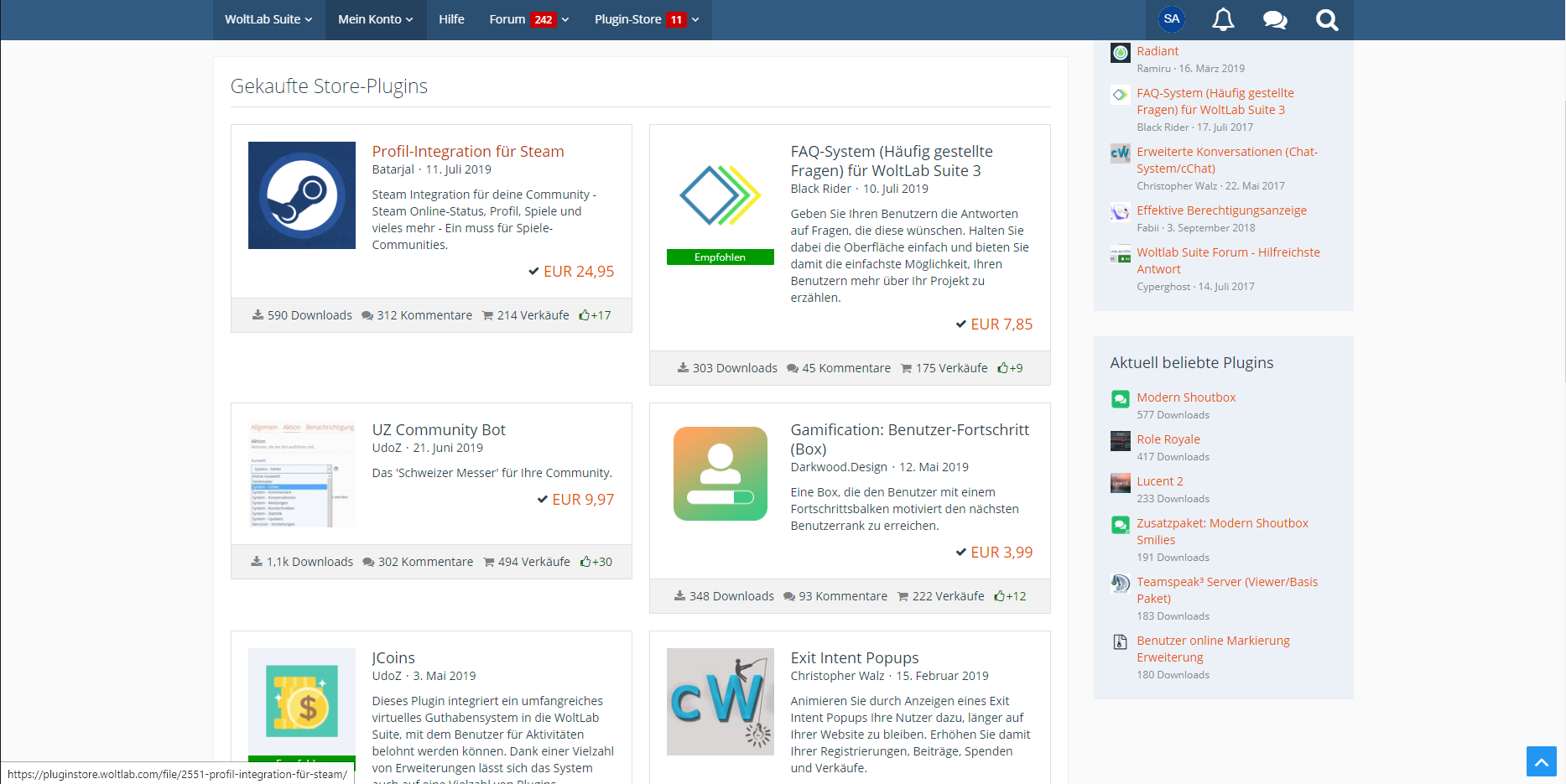 Ich biete hier meinen Kompletten Woltlab Account an. Ohne Foren Lizenz oder ähnliches. Nut die Unten aufgelisteten Plugins!