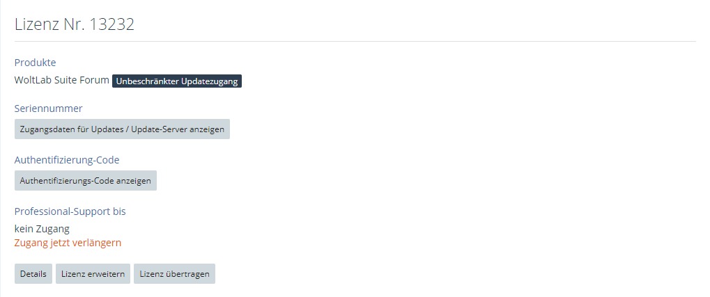 Verkauft wird hier eine nicht länger erhältliche WoltLab Suite Forum Platinum-Lizenz (UVP: 199 EUR). Diese Platinum-Lizenz enthält unbeschränkten Update-Zugang zum WoltLab Suite Forum (respektive WoltLab Burning Board) und kann bei Bedarf natürlich noch erweitert werden: