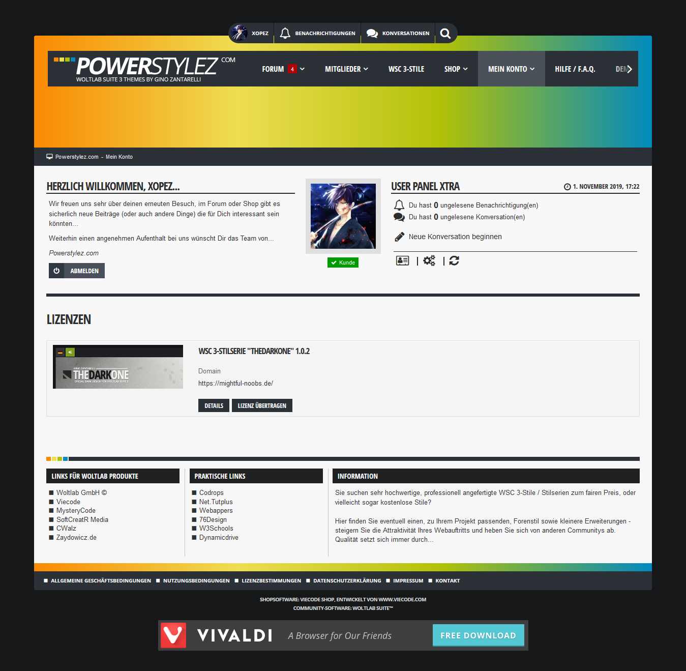 Hallo, ich biete hier die WSC 3-Stilserie "TheDarkOne" a. Neupreis 28,50€ https://www.powerstylez.com/community/wcf/…rie-thedarkone/ Das ganze wird übertragen auf der selbigen Seite. 20€