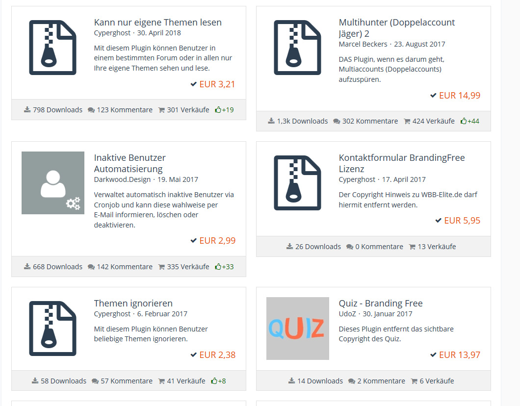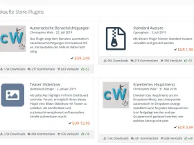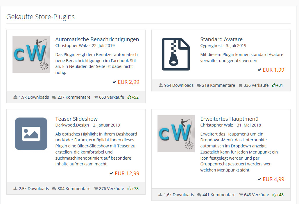 Zusätzlich befinden sich folgende gekaufte Plugins im Account: