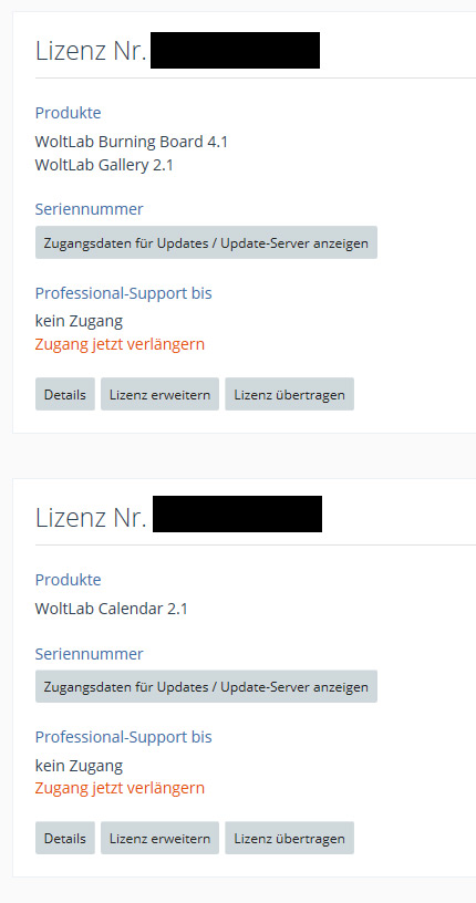 Es handelt sich dabei um einen Woltlab Acoount mit 3 alteren Lizenzen und einigen Plugins.