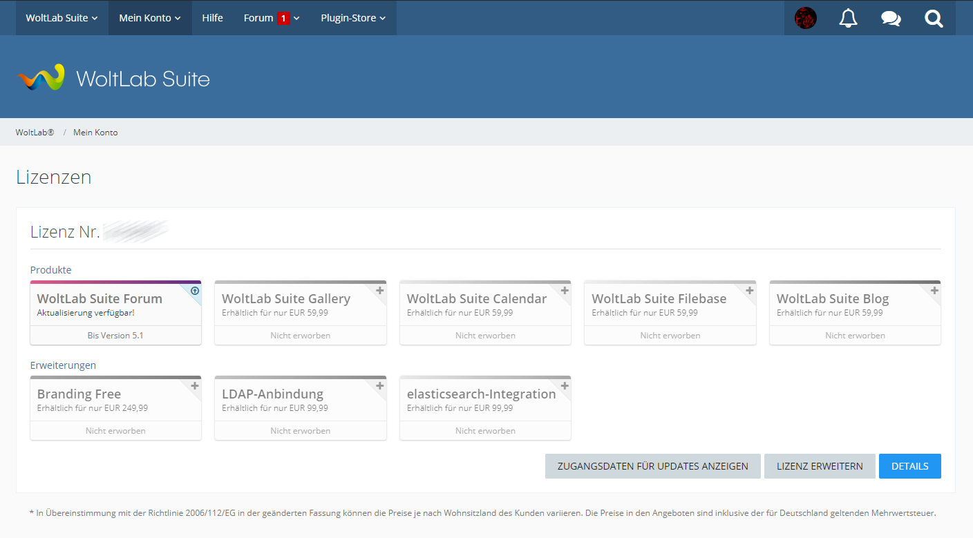 Bin aktuell auf der Suche nach einer Woltlab Suite Lizenz.