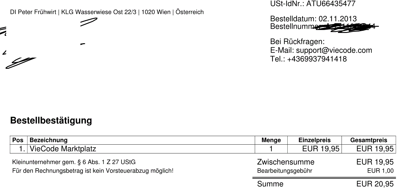 + ViefCode Marktplatz gekauft 2013 Rechnung vorhanden.