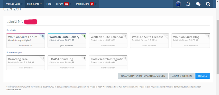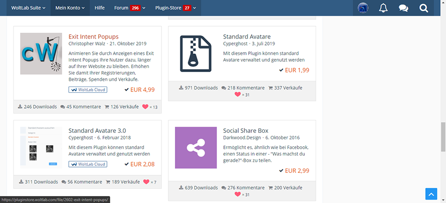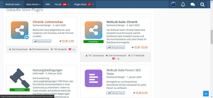 • Verkaufe den kompletten Kundenaccount von Woltlab+Plugins.