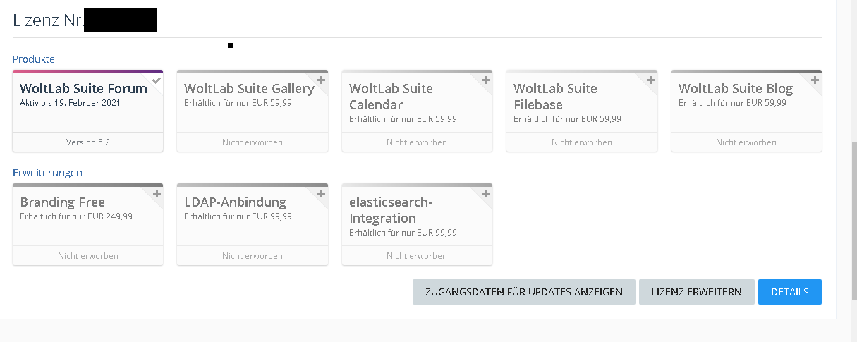 ich biete eine stink-normale WoltLab Suite Forum 5.2 - Lizenz, da ich mit meiner