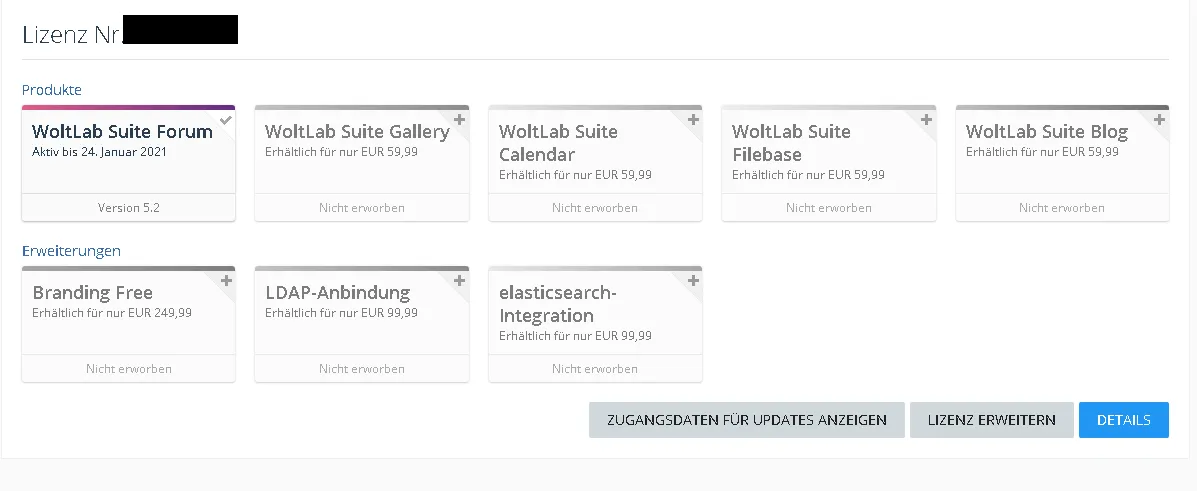 ich biete eine stink-normale WoltLab Suite Forum 5.2 - Lizenz, da ich mit meiner