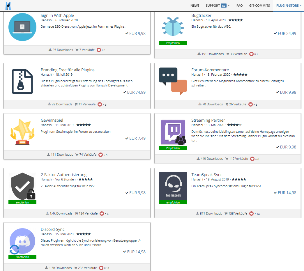 Hier biete ich meinen Account bei Hanashi (Account Übergabe) mit folgenden Plugins an: Neupreis: 177,35€ Mein Preis: 100€ Bezahlung ausschließlich per PayPal 100€
