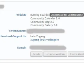 Es ist eine der ersten Lizenzen die WoltLab jemals verkauft hat. Sie weist eine zweistellige Lizenznummer (>80) auf und wurde im Jahr 2004 in eine Platinium-Lizenz geupdatet.