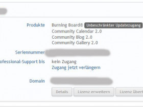 Forum Lizenz: 215,00 EUR (wBB2 Premium-Lizenz: 99 Euro + 4*29 Euro Updatekosten)