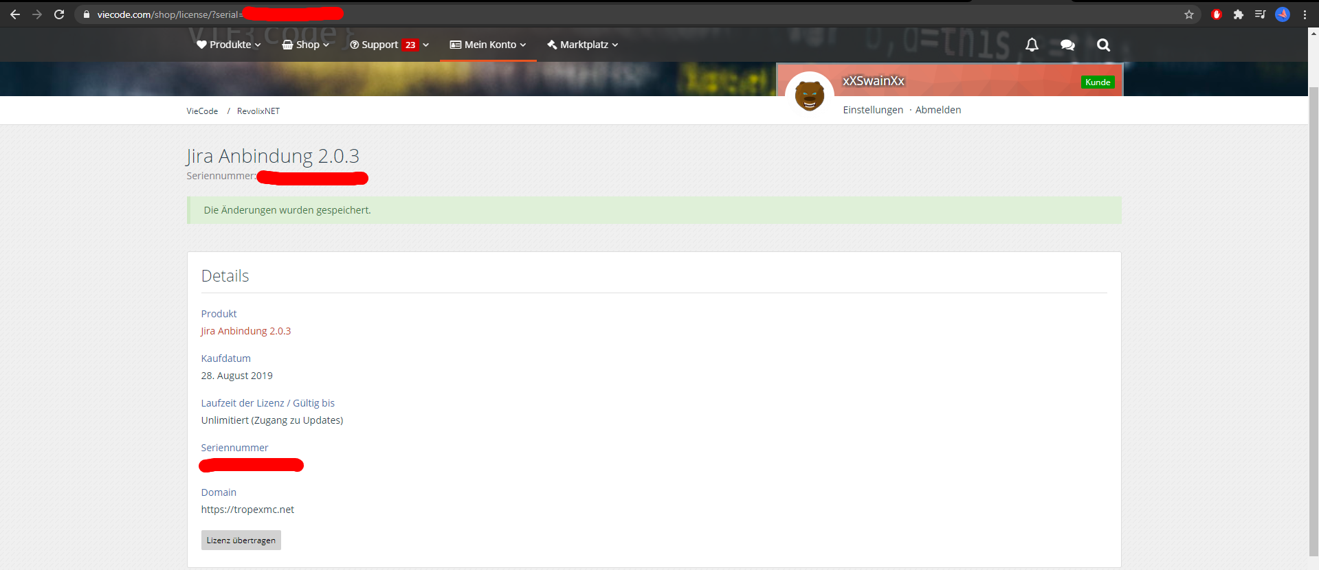 Zu beachten: https://www.viecode.com/support-richtlinien/