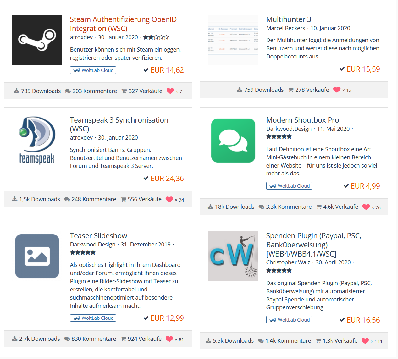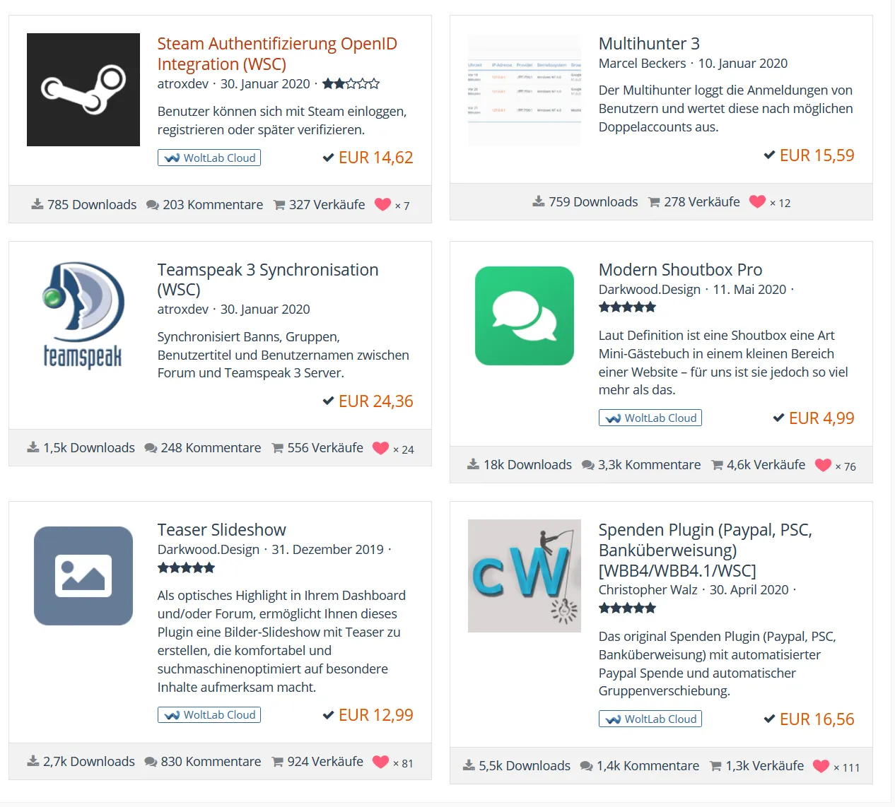 | Steam Authentifizierung OpenID Integration (WSC) 3.0.0 | 14,62 € |