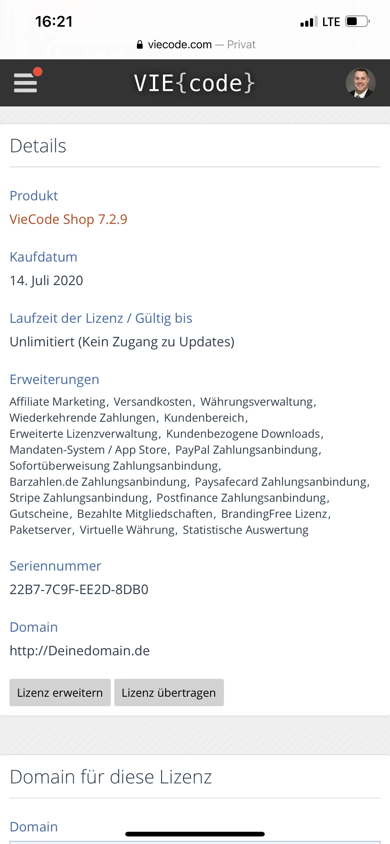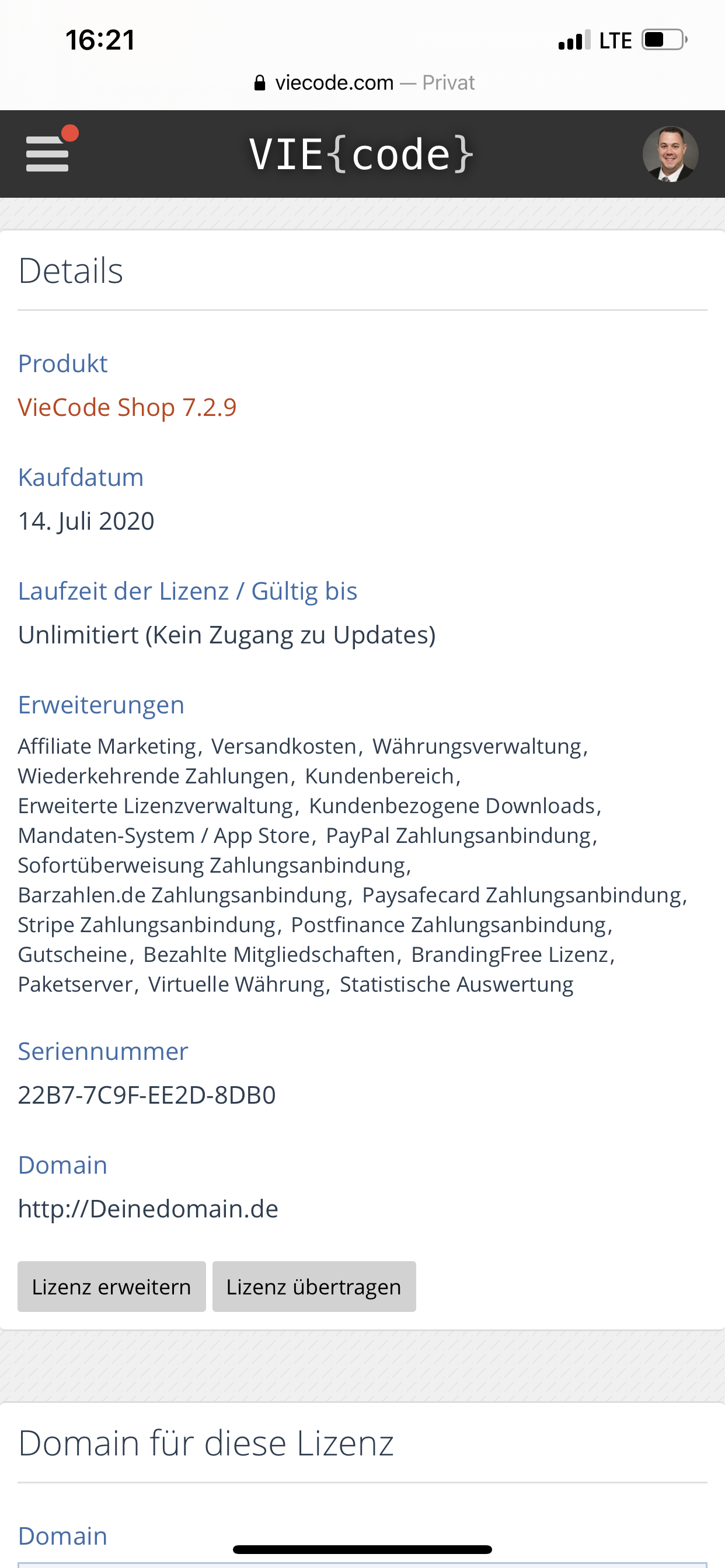 Guten Tag ich verkaufe eine VieCode Shop Lizenz. Bezahlung per Paypal.Es handelt sich um eine Lizenzübertragung.Achtung: VieCode stellt nach dem Kauf der Lizenz keinen Support mehr bereit da es sich um einen 2. Käufer handelt. 185€ VHB