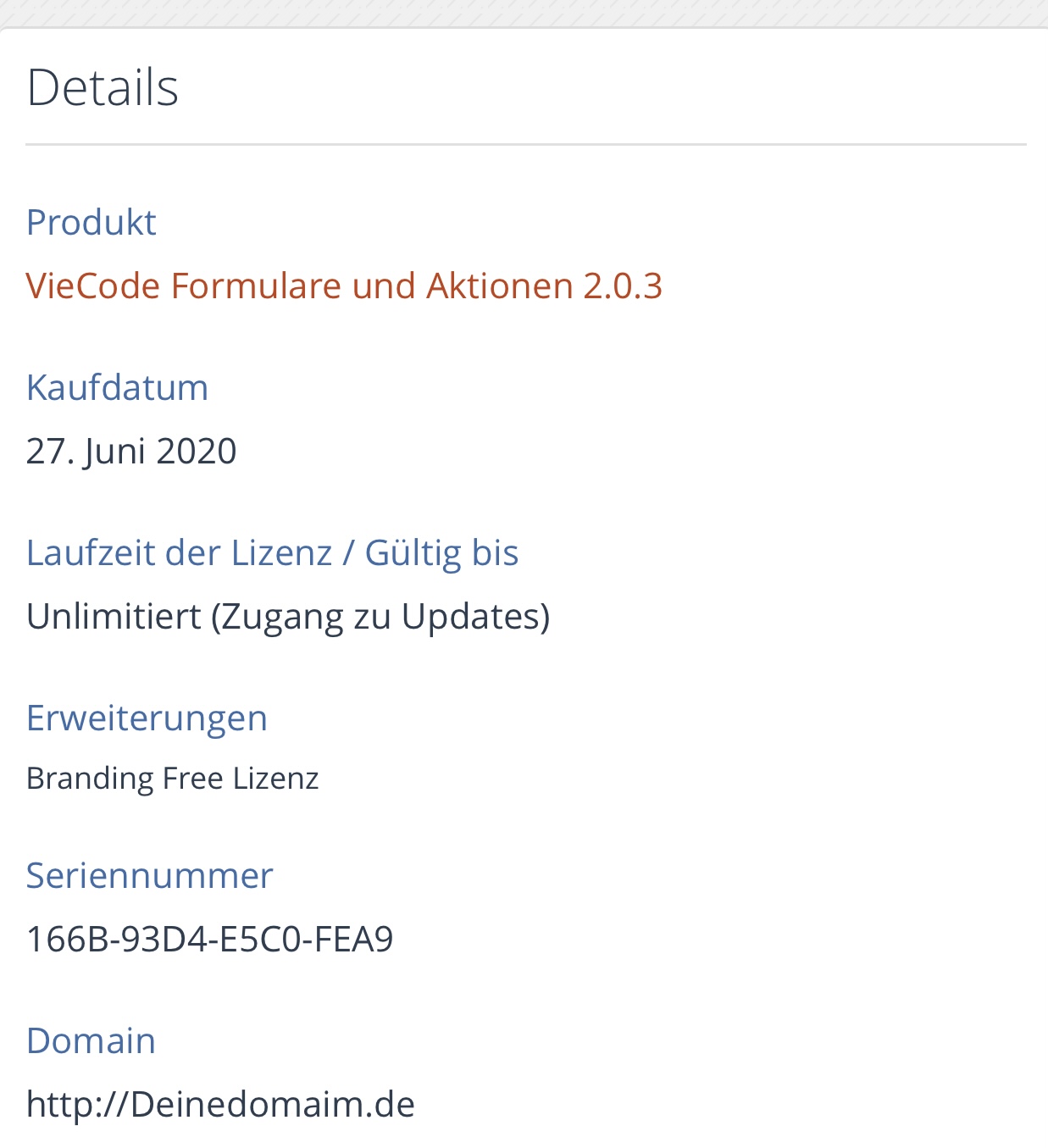 Guten Tag ich verkaufe eine Lizenz. Bezahlung nur per Paypal.Es handelt sich um eine Lizenzübertragung.Achtung: VieCode stellt nach dem Kauf der Lizenz keinen Support mehr bereit da es sich um einen 2. Käufer handelt. 20€