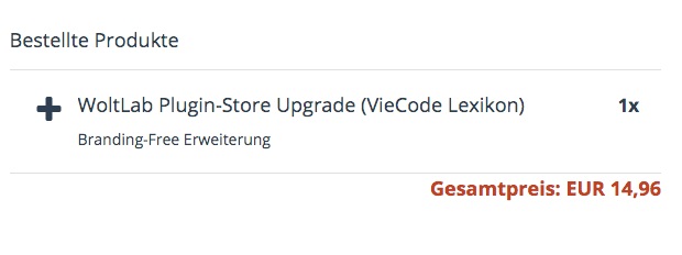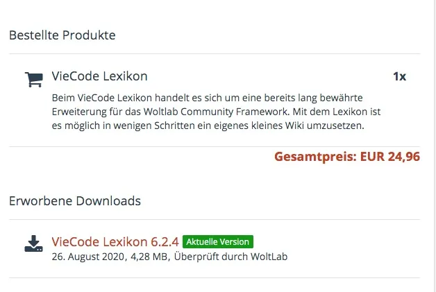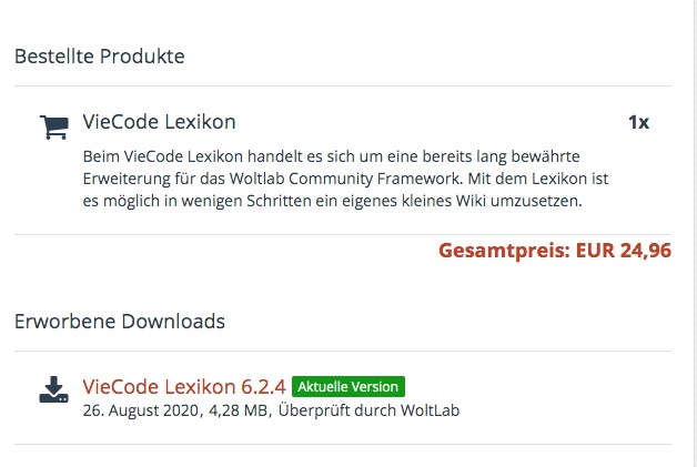 Hinweis: der Käufer nur Lesezugriff auf die Supportbereiche bekommt (siehe https://www.viecode.com/support-richtlinien/ "Gebrauchte Lizenzen"). Der Lizenztransfer kann über den Kundenbereich durchgeführt werden und sind mit keinen Kosten verbunden.